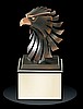 7" tall electroplated resin eagle head with highlight gold beak, eyes, and feathers